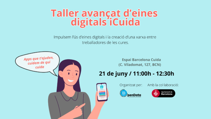 El pròxim dissabte 21 de Juny a les 11h. iniciarem el primer taller avançat d’eines digitals 2025 de “Apps que t’ajuden, cuidem de qui cuida” que tindrà lloc a la Espai Barcelona Cuida, carrer Viladomat, 127, 08015, Barcelona.