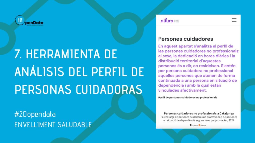 Visualització de mapes i gràfics basats en dades obertes sobre persones cuidadores no professionals: distribució territorial, sexe, hores dedicades.