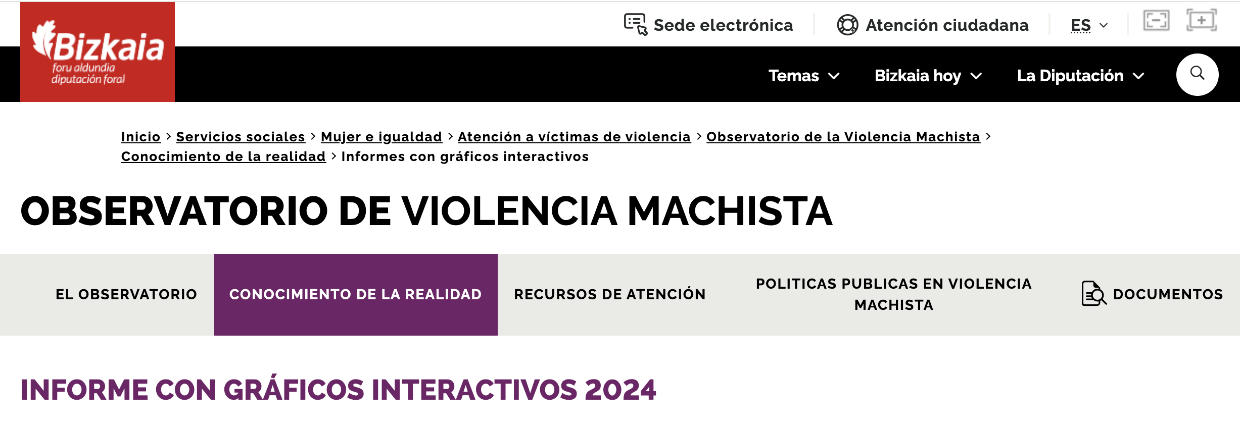 El informe, disponible en la web del Observatorio de Violencia Machista de la Diputación Foral de Bizkaia, dentro del apartado Conocimiento de la realidad, es el resultado de un trabajo colaborativo entre el Observatorio y Iniciativa Barcelona Open Data, orientado a mejorar el acceso, la comprensión y el uso de los datos sobre violencia machista a través de visualizaciones interactivas.