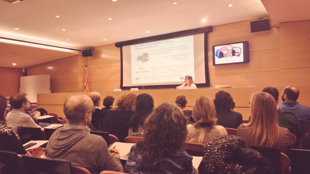 Per exemple, “Per què la ciutadania ha de fer servir les dades obertes?“, així com la importància de la utilització de l’Open Data: la seva necessitat, si generen coneixement obert, quins beneficis socials generen i quin ha der el paper del sector públic en l’obertura de dades. Al llarg de la sessió, Lourdes va posar de manifest com les dades peremeten empoderar a la ciutadania, i quins són els múltiples beneficis que el conjunt de la ciutadania em podem treure de la seva utilització, en front altres tipus de dades com és el Big Data, amb exemples de casos concrets on, per exemple el periodisme ha estat capaç d’exercir un “control” extern al que es feia en cercles econòmics o guvernamentals, al compartir la informació obertament.
