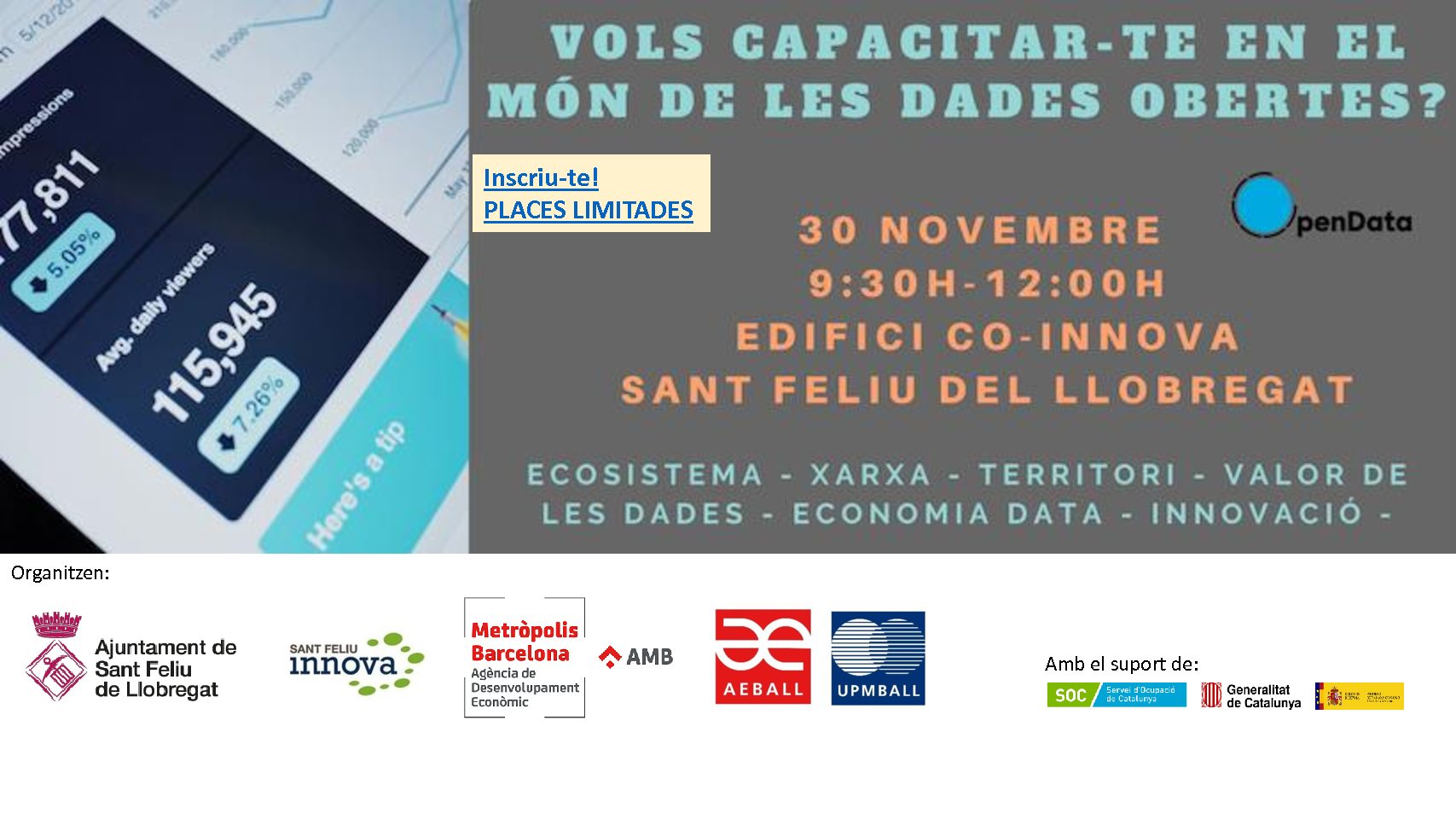 El proper divendres 30 de novembre posarem en marxa un espai per promoure l’ecosistema d’econòmic basat en el valor de les dades obertes a l’àrea metropolitana de Barcelona. Volem comptar amb professionals del sector públic i privat que es dediquen a la promoció de l’activitat econòmica al territori.