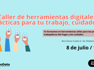 Aquest passat dissabte 8 de Juliol, i organitzat per Iniciativa Barcelona Open Data juntament amb l’Ajuntament de Barcelona a traves de l’espai Barcelona Cuida, es va dur a terme un Taller d’eines digitals pràctiques pel treball de les cuidadores de la llar i les cures.