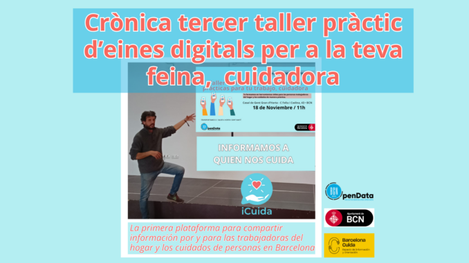 El dissabte passat 18/11, varem portar a terme una nova sessió del taller d’iCuida, on es va explicar el funcionament de l’App del mateix nom, de manera molt práctica entre les assitents. A la vegada es va informar tambe d’altres eines digitals que poden ser molt útils per a les persones treballadores de la llar i les cures.