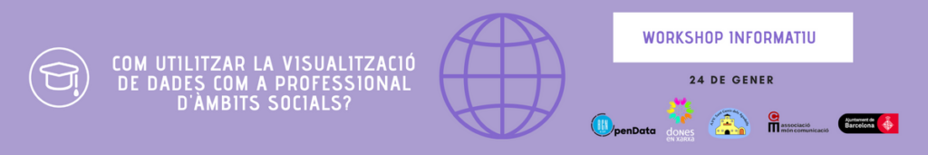 Com utilitzar la visualització de dades com a professional d’àmbits social? on es presentarà el Certificat, el proper 17 de Gener a les 18:30h a l’Associació de Veïns i Veïnes de Sant Genís dels Agudells (Av. del Jordà, 29, Barcelona). Cal confirmar assistència https://bit.ly/e_workshop_info