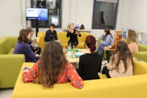 Lourdes Muñoz, la presidenta de Iniciativa Barcelona Open Data, inició la charla con una breve introducción de los proyectos que ella gestiona el último semestre de 2019.