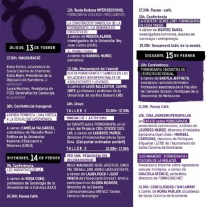 La actividad será a las 15.30h y se enmarca dentro de la agenda del I Fòrum Internacional sobre Feminismo y Pornografia ‘El Porno Feroz’ organizado por el Ayuntamiento de Santa Coloma de Gramanet los días 14, 15 y 16 de febrero. Inscríbete de manera gratuita y encuentra toda la información en este enlace.