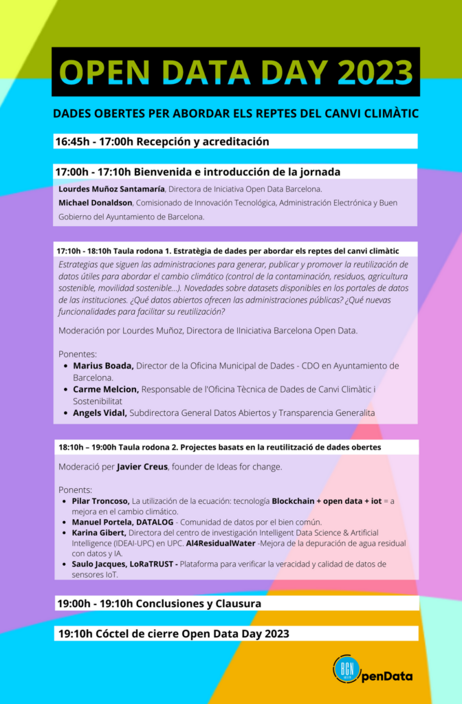 Este año convocamos el OpenDataDay en Barcelona el próximo 7 de marzo por la tarde. El Open Data Day es una iniciativa a escala mundial que se celebra desde hace 10 años y donde grupos de todo el mundo crean eventos locales y utilizan los datos abiertos en sus comunidades para crear aplicaciones, visualizaciones, realizar open datos o publicar análisis. Se trata de un evento anual que busca promover el conocimiento de datos abiertos a escala mundial.