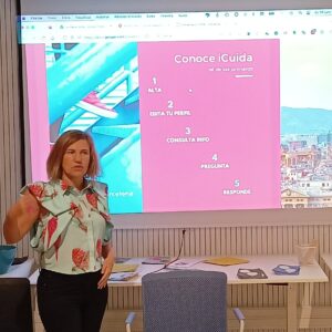 Lourdes Muñoz, Presidenta de Iniciativa Barcelona Open Data, avanzó a las asistentes que iCuida contribuirá a que tengan una calidad de vida mejor con el nuevo prototipo de la app. Con nuevas funcionalidades, con mas información del sector y centrada en las personas cuidadoras. Con iCuida las cuidadoras podrán consultar y compartir Informacion de manera colaborativa, disponiendo además, de perfiles verificados (Ayutamiento de bcn, asociaciones de mujeres,…)