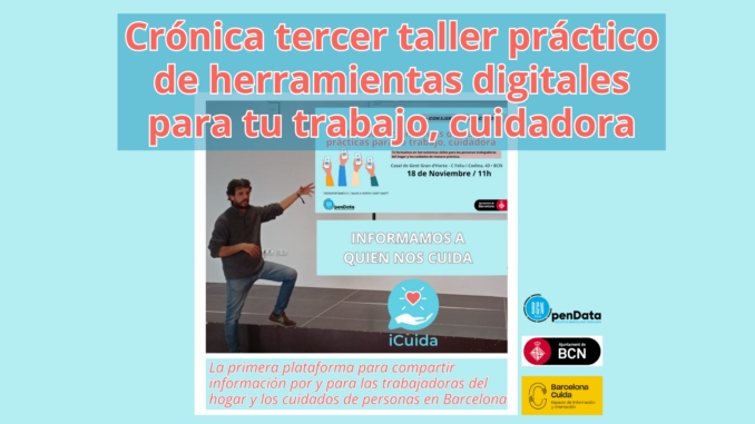 Finalmente se facilitó una encuesta para que nos hagan saber qué aspectos podemos mejorar para dar un mejor servicio desde iCuida y se anunció que la próxima sesión del taller será este 24 de Noviembre a las 18:30h en el Casal Ca l’Isidret en Sant Martí, C/ de Josep Pla, 174, BCN.